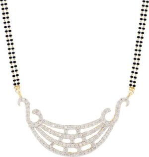product_specification => Pearl Type – NA Base Material – Alloy Brand – Parinaaz Model Number – M111_M127 Precious/Artificial Jewellery – Fashion Jewellery Plating – 24K Yellow Gold Type – Mangalsutra Color – White Silver Weight – 0 g Chain Included – Yes Diamond Weight – 0 carat Diamond Shape – NA Gemstone – Cubic Zirconia Sales Package – 2 Mangalsutra Pendant , 2 Black Beaded Mangalsutra Chain Certification – NA